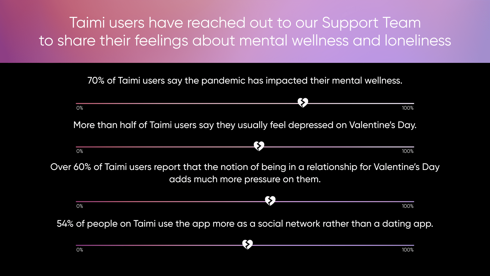 Every year since its inception, Taimi — the world’s largest LGBTQ+ platform that features a social network and dating app — has received thousands of messages from its users asking for advice, help, consolation, and whatever else is on their minds. These messages tend to double in numbers in the weeks and days leading up to Valentine’s Day. This year, due to the pandemic and global lockdowns, the incoming texts about the commercialization of love and what it means on February 14 are overwhelming.
