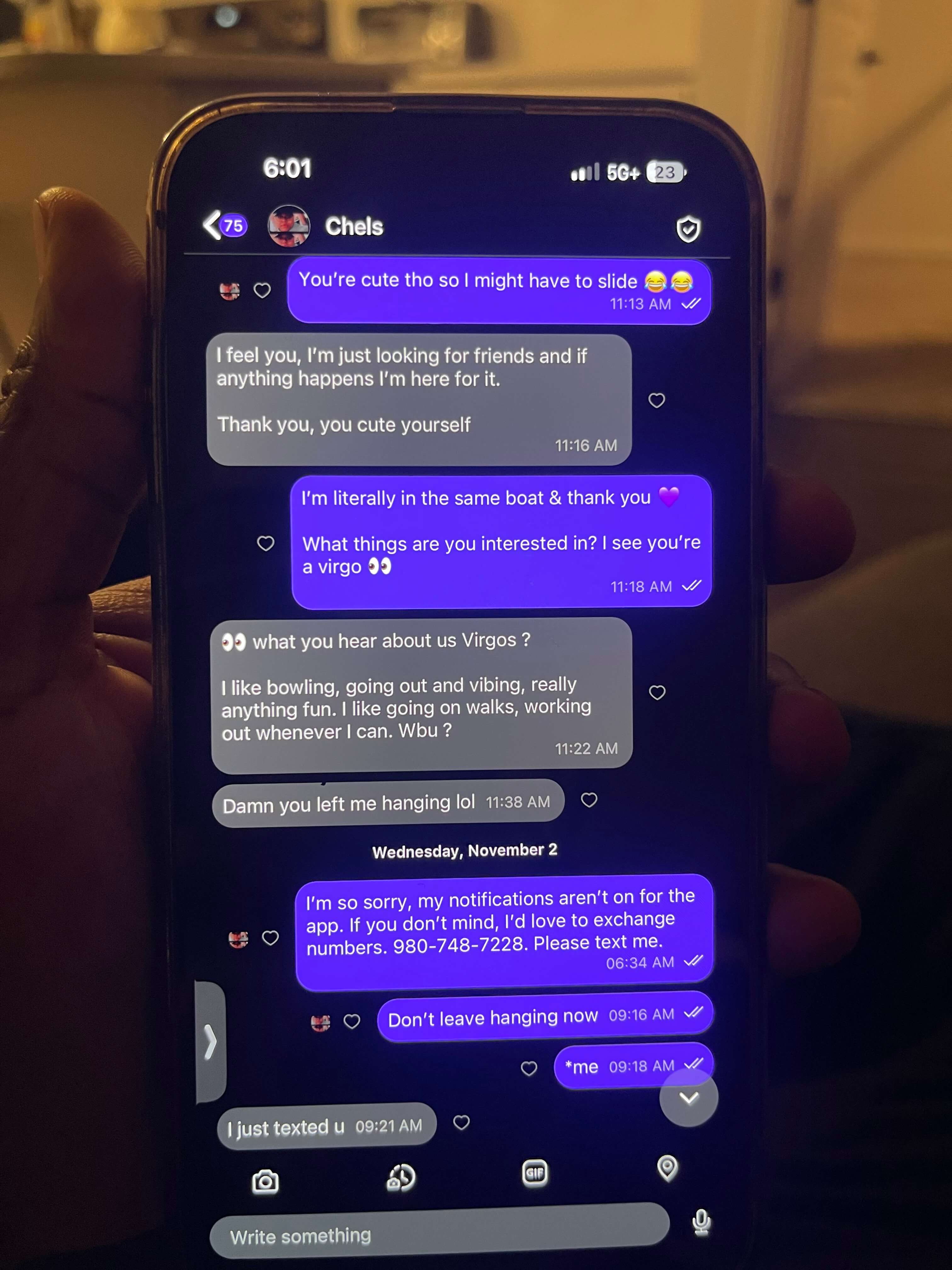 When I got off of work that evening, I went to see her at work and the chemistry was off the charts. I was completely attracted to her energy and everything about her. From that moment on, everything else just flowed. She is so gentle and so kind. This is the healthiest relationship that I have ever been in. She genuinely loves everything about me and I am more than proud to be her woman.
